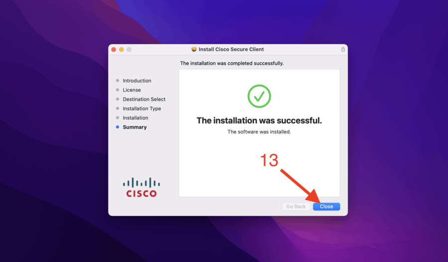 13- بر روی دکمه close بزنید تا نصب به پایان رسد